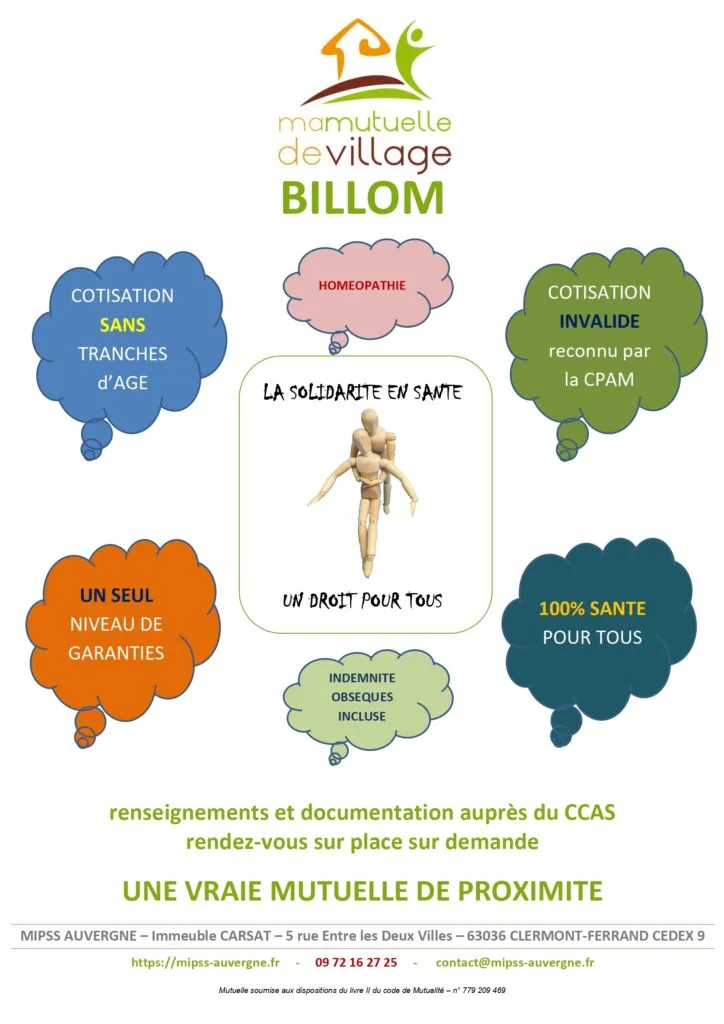 Depuis 2018, les habitants de Billom et leurs proches peuvent adhérer à « Ma Mutuelle de Village », une complémentaire santé prônant la solidarité, la démocratie et la proximité.